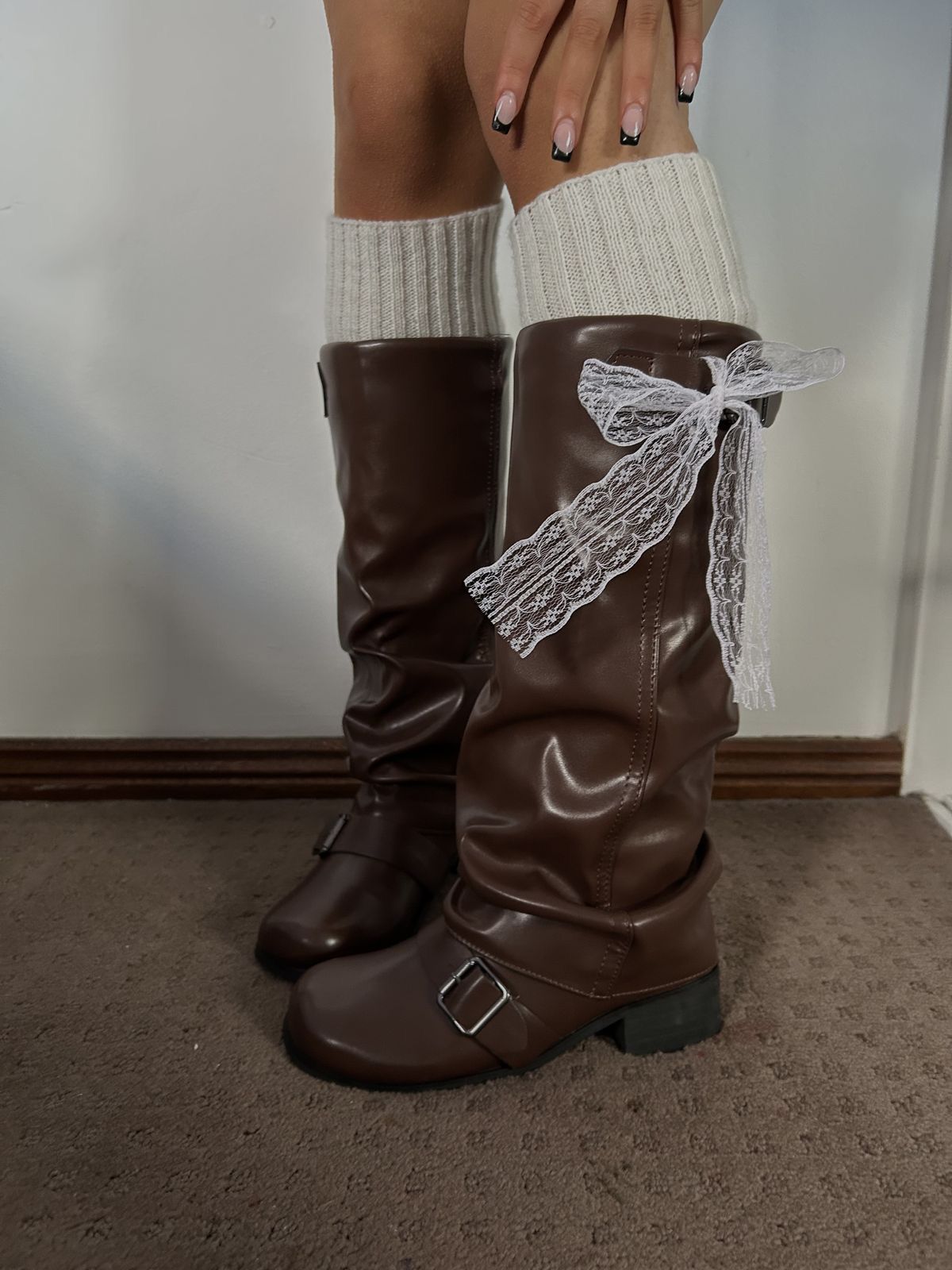 Boots Shein, Boots Inspo, Coquette Boots, Shoes Coquette, Boots With Ribbon, Boots With Bows, Bows On Boots, Coquette Boots Outfit