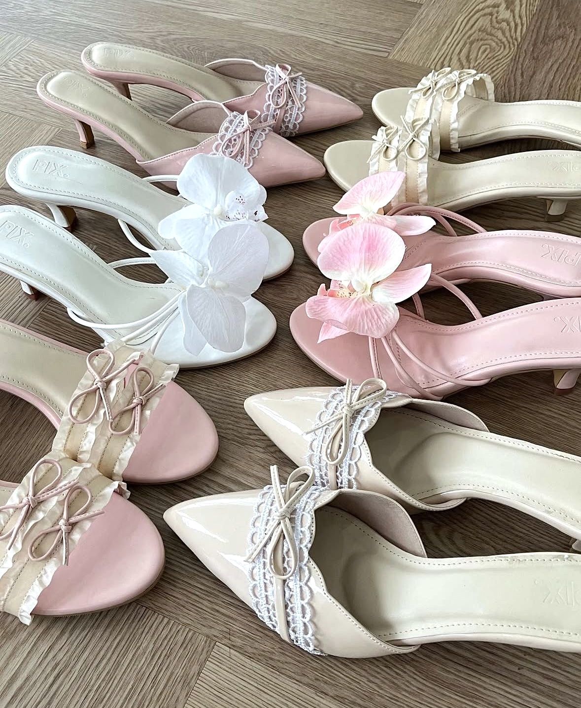 Dior Flower Heels, Girly Shoes Aesthetic, Floral Heels Aesthetic, Pink And White Kitten Heels, Flower Heels Aesthetic