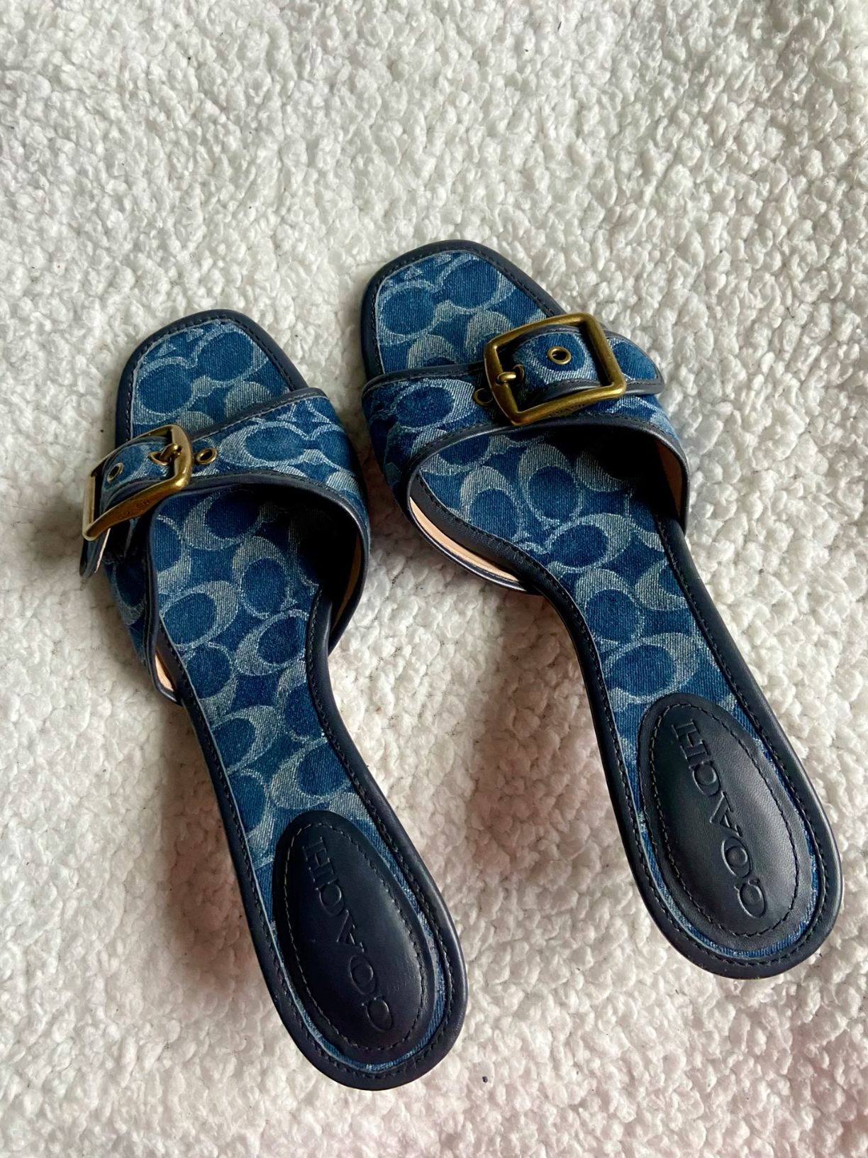 Kitten Heels Designer, Blue Coach Kitten Heels, Coach Heel, Heels Blue, Sandals Y2k, 2000 Heels, Coach Heels, Blue Heels With Bow