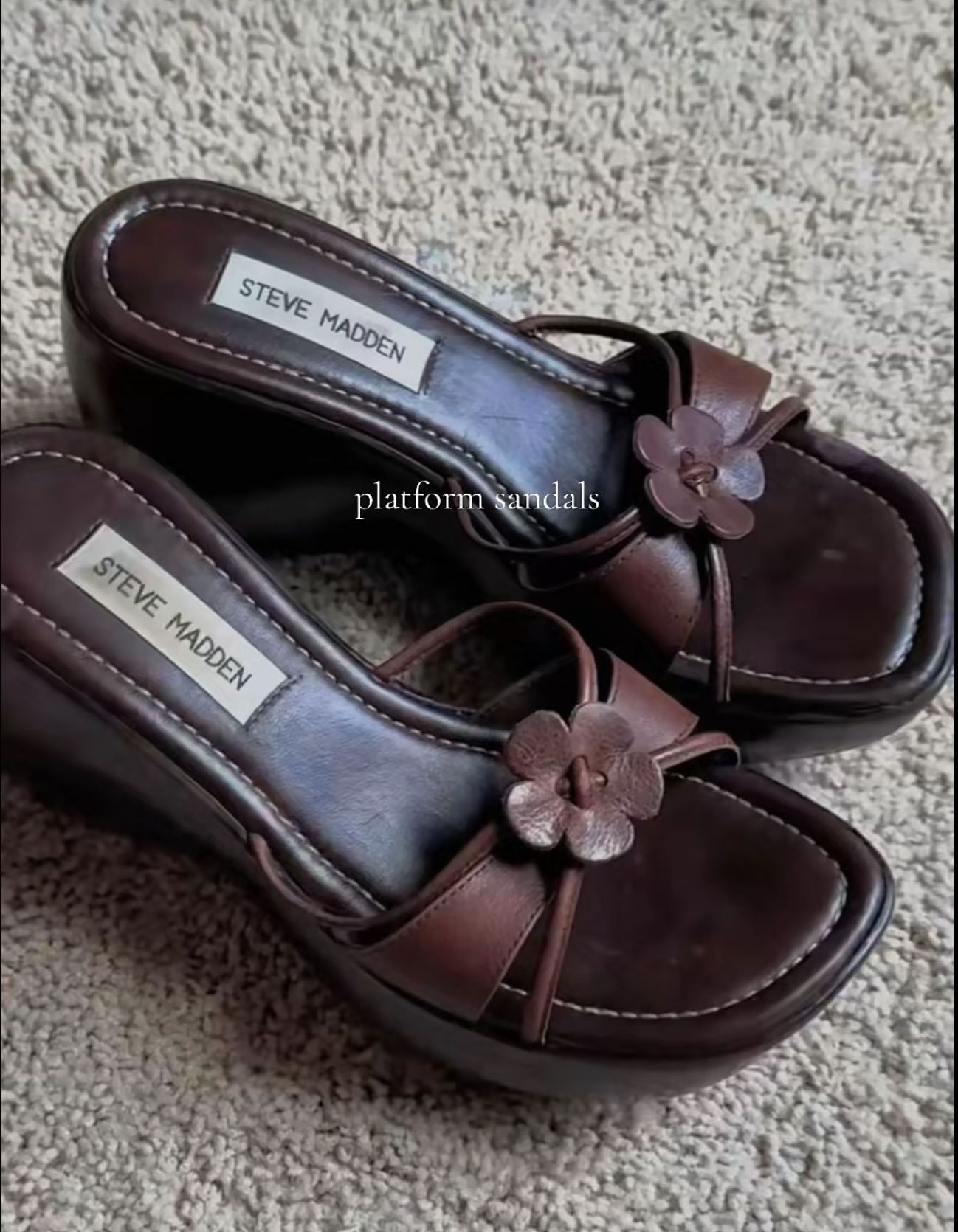 Steve Madden Platform Sandals Flower, Vintage Brown Sandals, Platform Sandals Vintage, Steve Madden Brown Heels, Cute Shoes Vintage